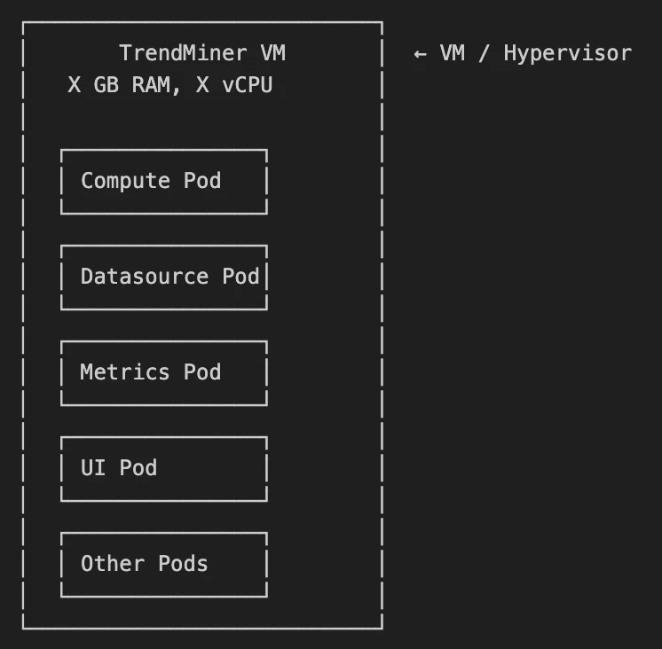 Each pod acts like a mini-VM running a single microservice. The TrendMiner VM acts like the hypervisor, guaranteeing resources for all pods at all times.