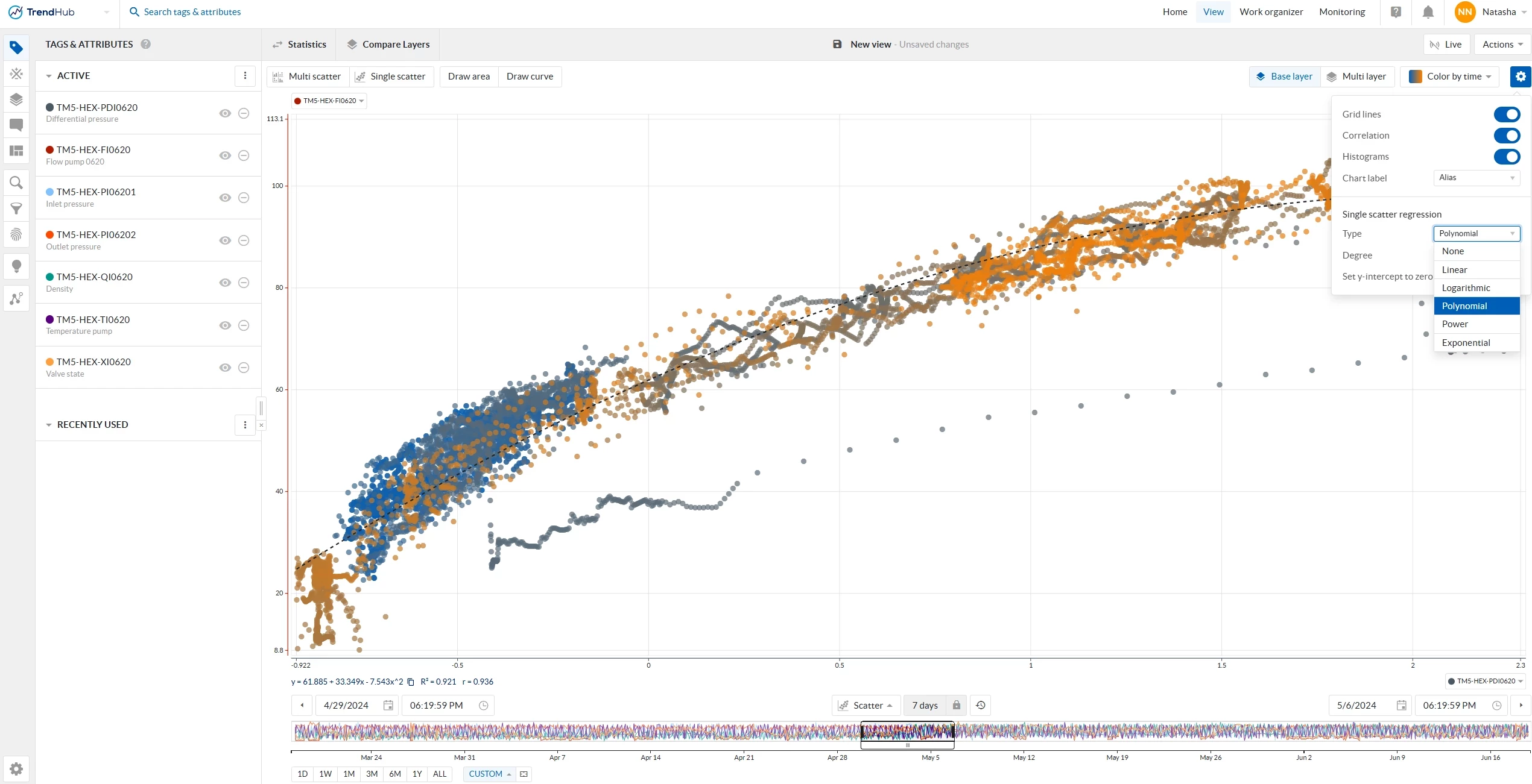 The 2024.R2 release introduced scatter plot formatting by layer, reducing the need to export chart data for further visual analysis. You can now differentiate between periods of operation directly in your scatter plots — for example, before and after maintenance, or during different operating modes.