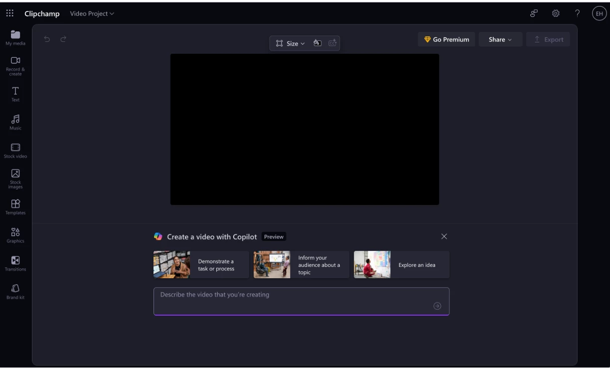 Write a clear description of your video's purpose and provide the script for your audio or on-screen text. Let Copilot AI do the heavy lifting—it will generate a polished, professional video in seconds. Once created, export it as an MP4 file, ready for embedding.