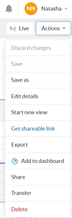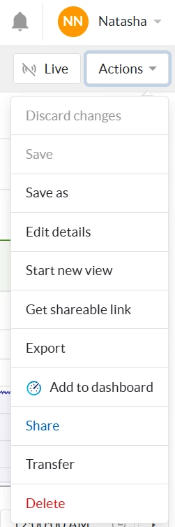 - Open the saved view or dashboard