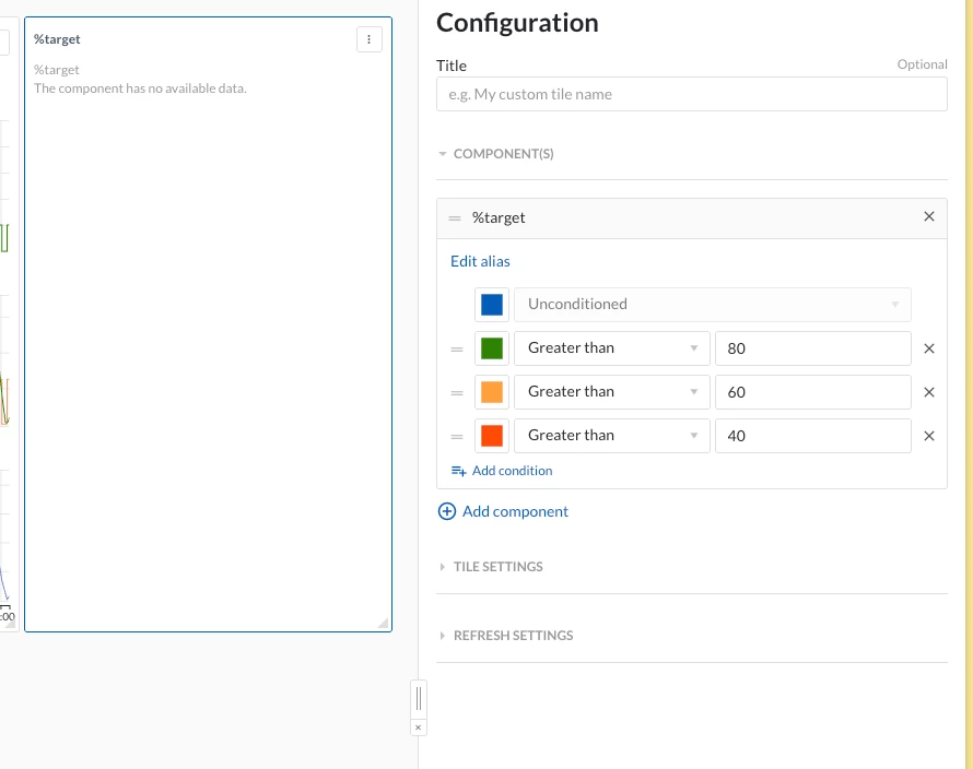 Adding a Current Value tile for the % target tag, with conditional formatting applied (as shown in the image below).