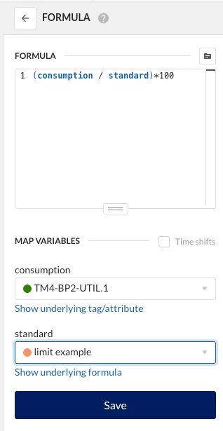 Now that we have our standard consumption tag, we can create a second formula tag to display the percentage difference between the actual and standard consumption values.