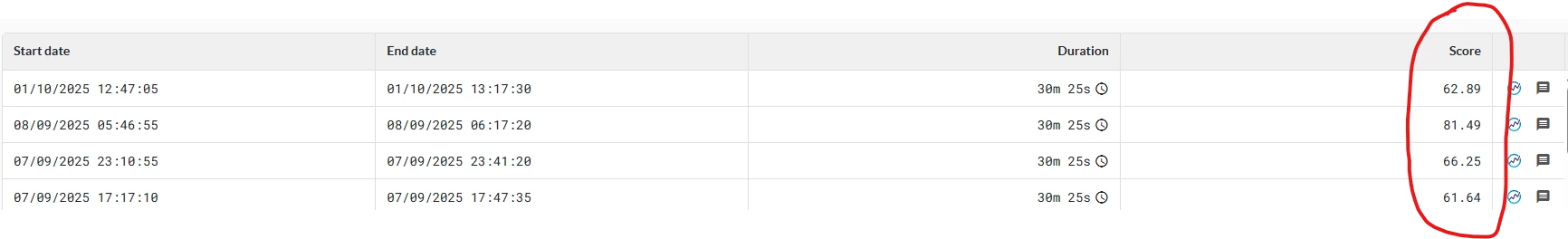 Currently, it is not possible to write these scores back to context items from within TrendMiner. However, it should be possible to this by running a small external service that uses the TrendMiner APIs.